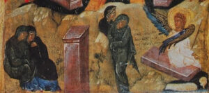 Αν γίνη τέτοια η ψυχή σου αγαπητέ, πήγαινε σαν τις Μυροφόρες με προθυμία και ταχύτητα – γιατί ο όρθρος αυτό φανερώνει – στον τάφο, δηλαδή στό βάθος της καρδιάς σου, που είναι κρυμμένος ο λόγος των επίγειων και των ουράνιων και ζήτησε με δάκρυα νοητά και αισθητά να μάθεις, αν αναστήθηκε ο λόγος της αρετης και της γνώσεως, που είναι μέσα σου. Αν ζητήσεις με τέτοιο τρόπο, πρώτα θα δεις να φεύγει από την καρδιά σου ο λίθος, δηλαδή η πώρωση της ασάφειας του λόγου, και αφού φύγει αυτή θα δεις τους αγγέλους, δηλαδή τις κινήσεις της συνειδήσεώς σου να σου κηρύττουν, ότι αναστήθηκε μέσα σου ο λόγος της αρετής και της γνώσεως, που είχε νεκρωθεί από την αμαρτία· επειδή στη ψυχή του φαυλοβίου ανθρώπου ο λόγος δεν ενεργεί, αλλά είναι σαν νεκρός. Έπειτα θα δεις κι αυτόν τον ίδιο το λόγο να σου εμφανίζεται στό νου γυμνός και χωρίς τύπους και σύμβολα και να γεμίζει τις νοερές δυνάμεις της ψυχής σου από χαρά πνευματική. Αφού λοιπόν πληροφορηθείς έτσι την Ανάσταση του λόγου με την πρακτική Μαρία, δηλαδή τη Μαγδαληνή, που είναι τύπος της πρακτικής ασκήσεως, να χαίρεσαι μαζί μέ την άλλη Μαρία, τή Μητέρα του Θεού, που είναι ο τύπος της θεωρητικής ζωής, η οποία αφού πήγε πρώτη και είδε μια φορά την Ανάσταση του Υιού της, πληροφορήθηκε και ησύχασε και δεν ξαναπήγε στον τάφο, σαν τις άλλες μυροφόρες, επειδή η θεωρία προηγείται και αντιλαμβάνεται απλά και άμεσα, ενώ η πράξη ακολουθεί και αποκτά τη γνώση με την πείρα.