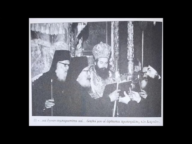 Πρωτάτο Καρυών Αγίου Όρους. Ψάλλει ο μακαριστός Επίσκοπος Ροδοστόλου Χρυσόστομος Λαυρεώτης στην δεύτερη Ανάσταση, συνοδεία άλλων Καρεωτών πατέρων. Η ηχογράφηση είναι την δεκαετία του 80΄.