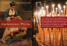 Εἶτα, κατὰ μικρόν, ἀφοῦ εἶπεν ὅσα τροπάρια ἐνθυμεῖτο ἀπὸ στήθους, ὕψωσεν ἀκουσίως τὴν φωνήν, καὶ ἤρχισε νὰ μέλπῃ τὸ ἀθάνατον ἐκεῖνο: