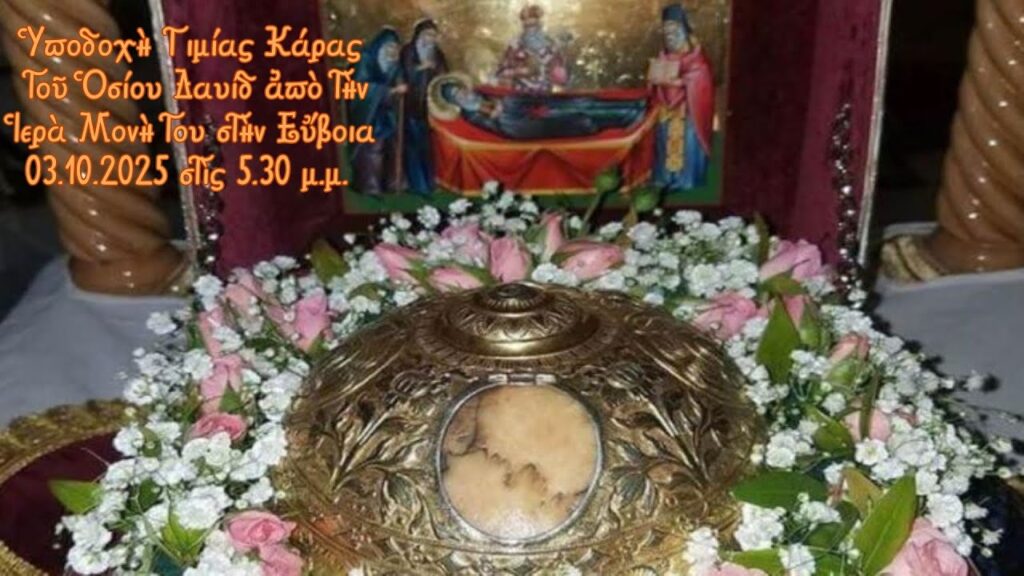 Ὑποδοχὴ τῆς Τιμίας Κάρας τοῦ Ὁσίου Δαυίδ ἀπὸ τὴν Ἱερὰ Μονή Του στὴν Εὔβοια (3.10.2025) admin 2 ώρες ago