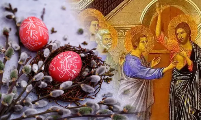 Από το παράδειγμα του Ιωάννη, που είναι τύπος της θεωρίας, και του Πέτρου, που είναι τύπος της πράξεως, πίστεψε τα παραπάνω. Και οι δύο αυτοί έτρεχαν μαζί, όπως λέει το Ευαγγέλιο, αλλ’ όμως ο Ιωάννης έφθασε νωρίτερα από τον Πέτρο. Και ο μεν Ιωάννης βλέπει «τα οθόνια κείμενα μόνα» και πιστεύει, ο δε Πέτρος εισέρχεται στον τάφο και περιεργάζεται τα οθόνια και το σουδάριο και τα λοιπά και πιστεύει.