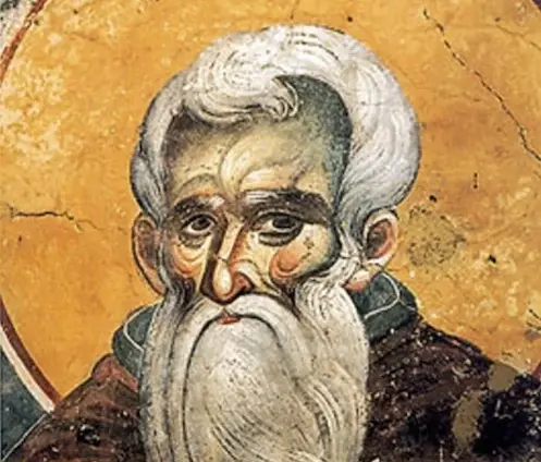 Όσιος Νείλος ο Ασκητής. Τοιχογραφία του 14ου αιώνα, Πρωτάτο – Καρυές